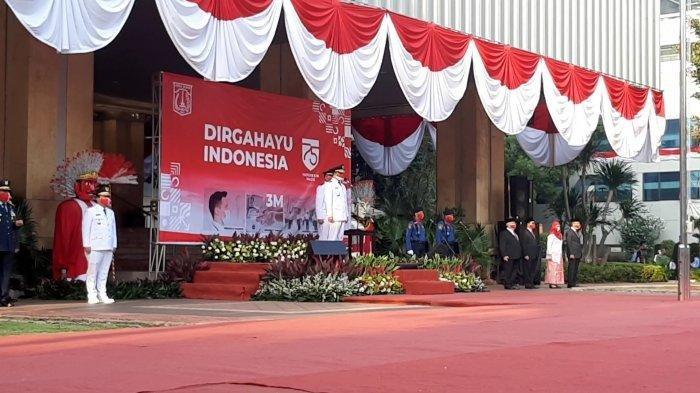 TRIBUNNEWSWIKI.COM - Upacara peringatan Hari Ulang Tahun (HUT) ke-75 Republik Indonesia digelar di Balai Kota DKI Jakarta, Senin (17/8/2020).