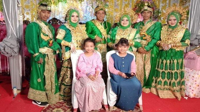 Tiga pasangan tersebut ternyata merupakan saudara kandung yang menggelar acara nikah serentak.