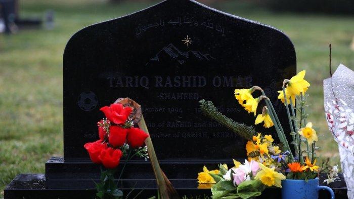 TRIBUNNEWSWIKI.COM - Aneka jenis bunga terlihat menancap di sejumlah makam korban serangan masjid di Christchurch, Selandia Baru.