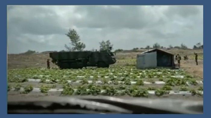 Dalam video tersebut, terlihat kebun milik petani dilindas kendaraan TNI AD hingga buah-buahan melon yang ditanam banyak yang rusak.