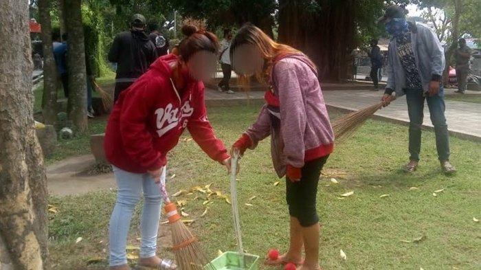 Karena dinilai melanggar Instruksi Bupati mengenai jam malam, mereka diminta melakukan kerja sosial.