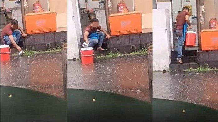 TRIBUNNEWSWIKI.COM - Sebuah video viral memperlihatkan seorang pria yang diyakini sebagai pegawai restoran mengambil air hujan dan dimasukkan ke dalam termosnya.