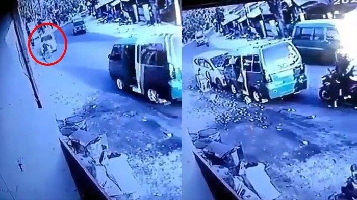 Dalam rekaman terlihat tukang siomay keliling itu terpental setelah di tabrak mobil yang melintas dari arus berlawanan.