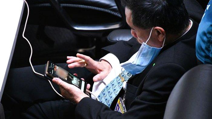 Seorang reporter yang duduk di galeri pers melihat Anuwat tidak memperhatikan dan segera mengambil foto anggota parlemen dari Provinsi Chonburi tersebut, Kamis (17/9/2020).