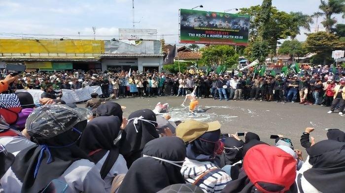 TRIBUNNEWSWIKI.COM - Demonstrasi besar-besaran terjadi di Kabupaten Garut, Jawa Barat, Kamis (8/10/2020).