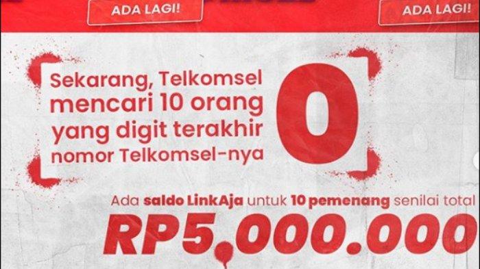 “Nomor digit akhirnya 0 yang berhak raih hadiah saldo LinkAja senilai total Rp5 juta untuk 10 orang pemenang,” tulis Telkomsel.