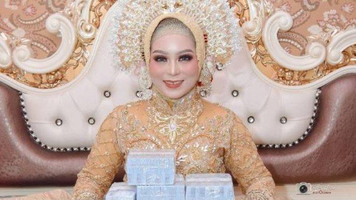 Foto yang diunggah Sabtu (17/10/2020) memperlihatkan seorang pengantin wanita yang diketahui bernama Irmawati sedang memangku uang Rp300 juta di dalam baki.