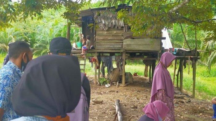Keluarga tersebut tinggal di kawasan terpencil, di tengah kebun sawit yang jauh dari pemukiman warga.