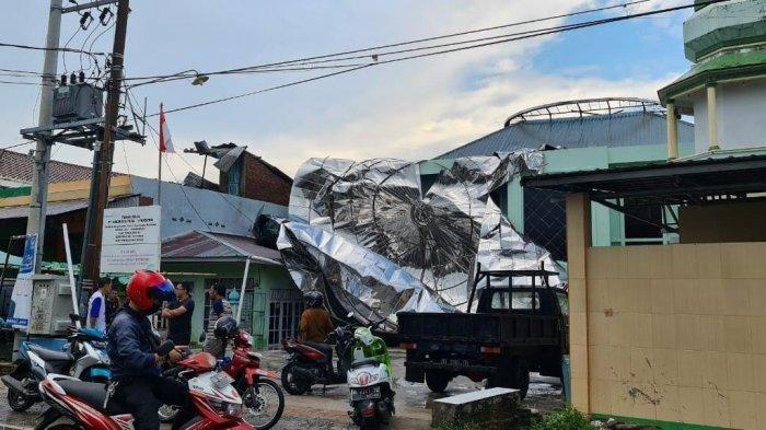 Angin putih beliung tersebut membuat kubah masjid hancur dan berserakan di sekitar masjid.