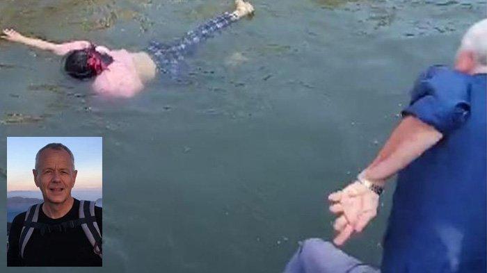 Sebuah rekaman video memperlihatkan diplomat Inggris itu melepas sepatunya sebelum melompat ke air untuk menyelamatkan wanita itu.