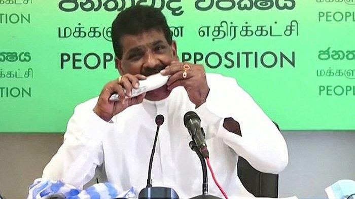 TRIBUNNEWSWIKI.COM - Seorang politisi Srilanka, yang juga mantan menteri perikanan negara itu, melakukan tindakan aneh dan nekat saat menggelar konferensi pers di Kolombo, Srilanka.