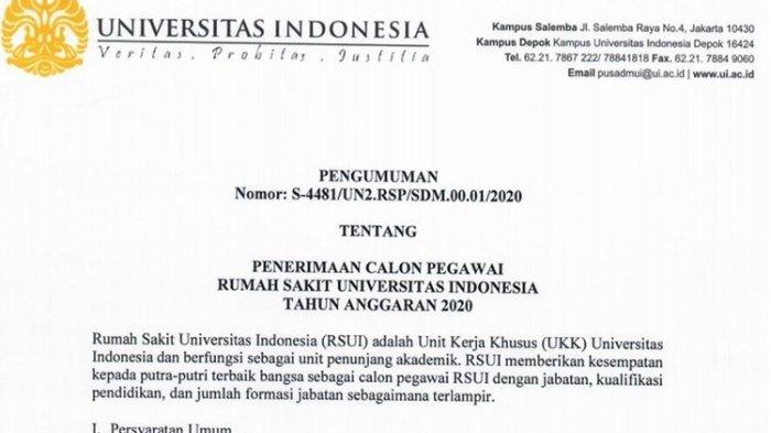 Dikutip Tribunnewswiki dari Kompas.com, lowongan kerja ini juga sudah dikonfirmasi oleh Humas RSUI, Kinanti Putri Utami.