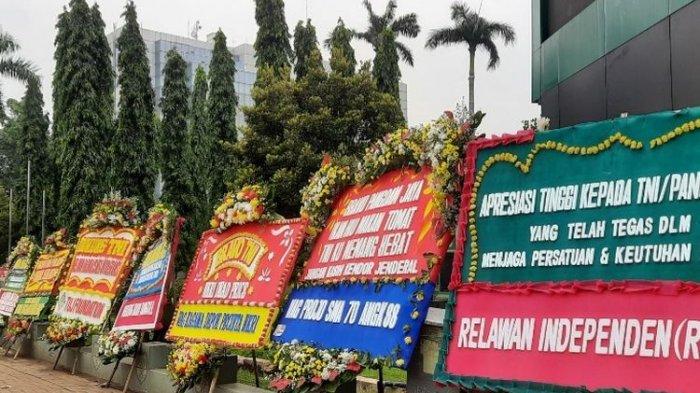 Puluhan karangan bunga tersebut diletakkan di sepanjang pagar Kodam Jaya.