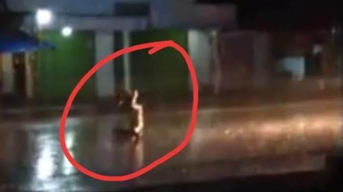 Sebelumnya pada Sabtu (21/11/2020), seorang pria yang diduga mengidap gangguan jiwa duduk di tengah jalan saat kondisi hujan deras.