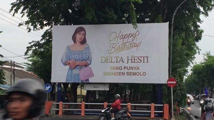 Pada baliho berukuran 4,5x8 meter itu, terlihat foto sang istri dengan tulisan "Happy Birthday Delta Hesti, Yang Punya Nginden Semolo".