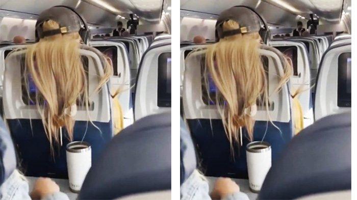 Ketegangan mulai muncul di antara dua penumpang wanita di pesawat setelah salah satu penumpang dengan sengaja mencoba menghalangi pandangan dari TV di dalam pesawat dengan rambut panjangnya.