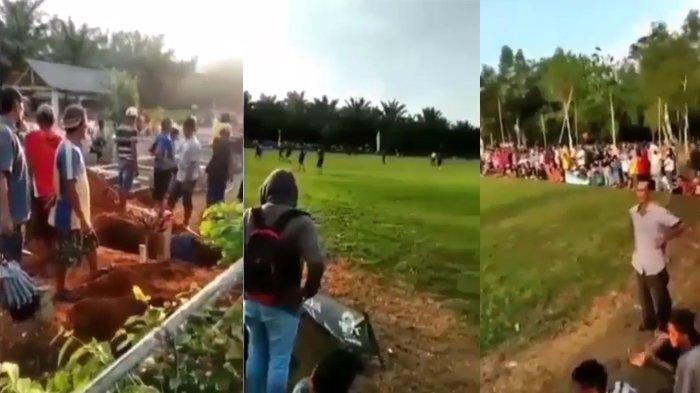 Dalam video yang beredar, terlihat ada lapangan sepak bola yang berada tepat di samping makam.