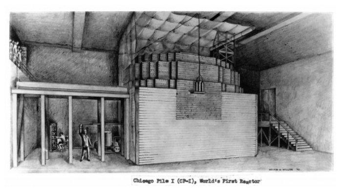 Reaktor itu bernama Chicago Pile-1 merupakan reaktor nuklir pertama di dunia. Reaktor itu dibangun dengan blok grafit, beberapa di antaranya berisi cakram uranium.