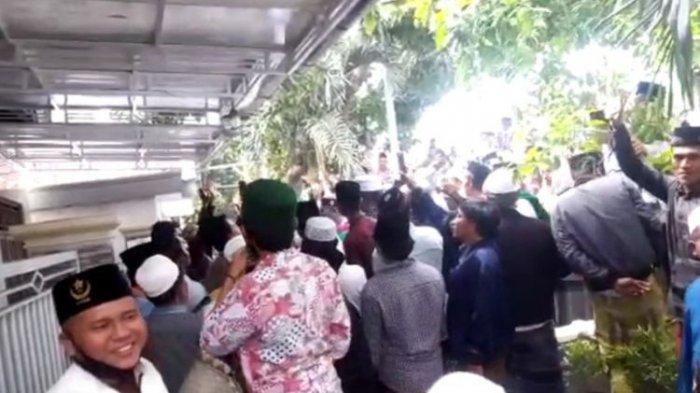 Mereka berteriak-teriak di depan rumah yang ditempati oleh ibunda Mahduf MD tersebut.