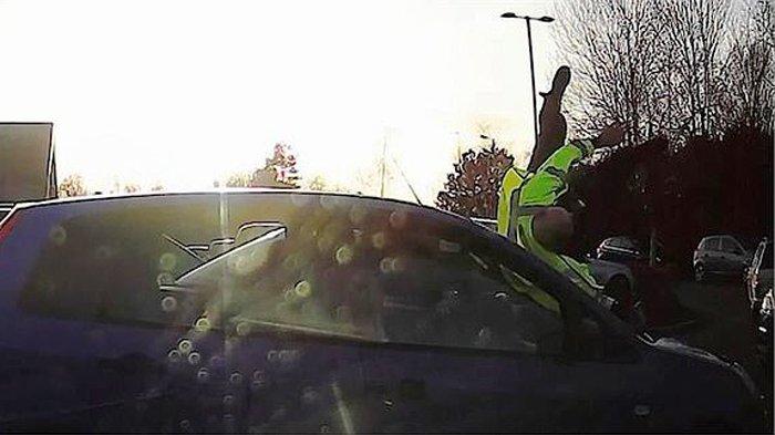 Dikutip Daily Mail, Selasa (15/12/2020), rekaman yang mengejutkan menunjukkan saat seorang pengendara yang marah menabrak seorang petugas polisi ketika dia mencoba melarikan diri dari tempat parkir Sainsbury, Inggris.