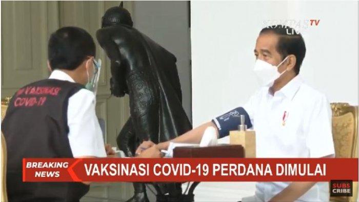 Jokowi mendapatkan suntikan vaksin Covid-19 pertama sekitar pukul 09.42 WIB di Istana Keprisidenan.
