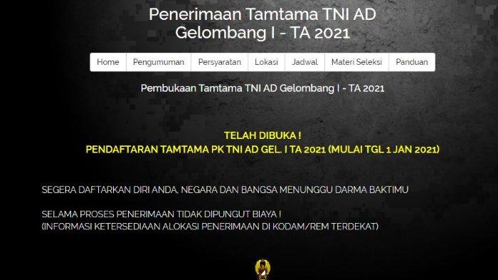 Informasi terkait rekrutmen Tamtama TNI AD Gelombang I telah dirangkun Tribunnewswiki dari situs resminya.