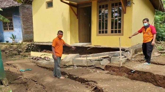 Beberapa rumah tampak mengalami kerusakan berupa lantai dan dinding retak, bahkan ada yang ambrol.