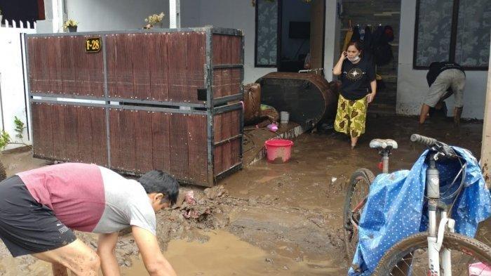 Warga pun bergotong-royong membersihkan sampah dan sisa lumpur banjir di lingkungan tersebut.