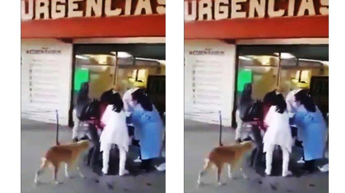 Menurut dokter yang merekam klip ini, wanita di atas menunggu setidaknya 10 menit di luar pintu rumah sakit untuk dirawat di rumah sakit dan melahirkan.