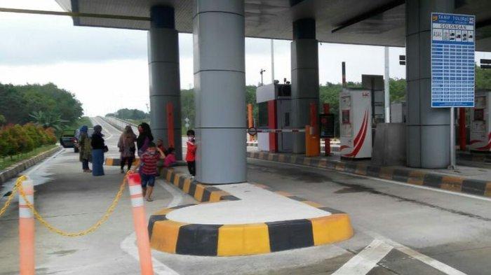 TRIBUNNEWSWIKI.COM - Sebuah mobil berisi rombongan keluarga tertahan di Pintu Tol Sidomulyo, Lampung Selatan, Minggu (14/2/2021).