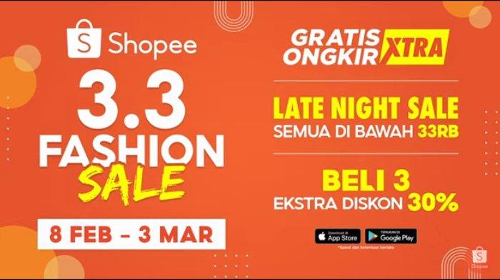 TRIBUNNEWSWIKI.COM - Shopee kembali menghadirkan kampanye Shopee 3.3 Fashion Sale yang sudah berlangsung pada 8 Februari hingga 3 Maret 2021.