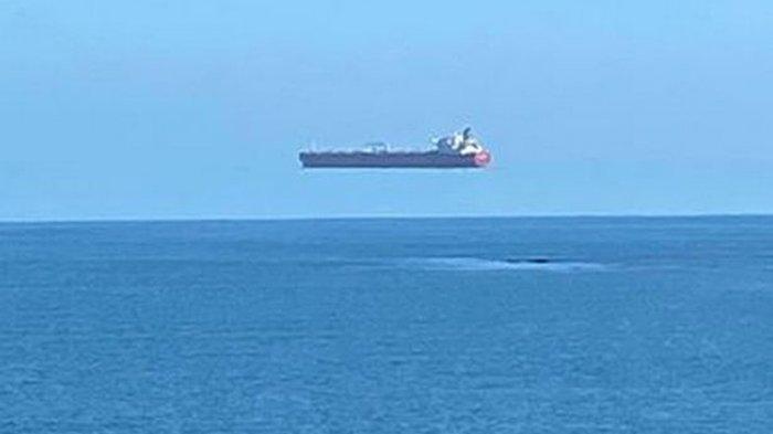 TRIBUNNEWSWIKI.COM - Sebuah kapal tanker tertangkap kamera 'melayang' di tengah lautan.