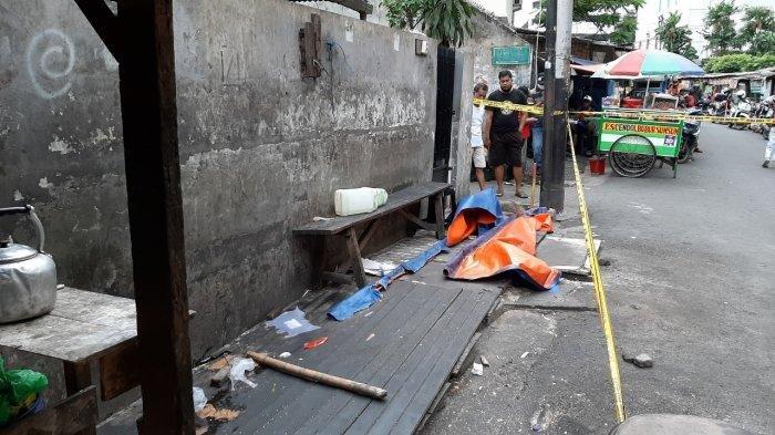 Lapaknya ambruk setelah kejatuhan potongan kaki manusia yang berasal dari Apartemen Ambassador, Setiabudi, Jakarta Selatan.