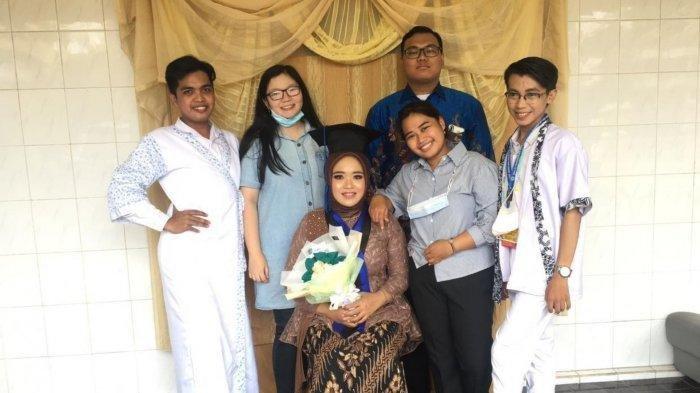 Awalnya sahabatnya yang bernama Dinda ini melakukan wisuda virtual seperti biasanya.