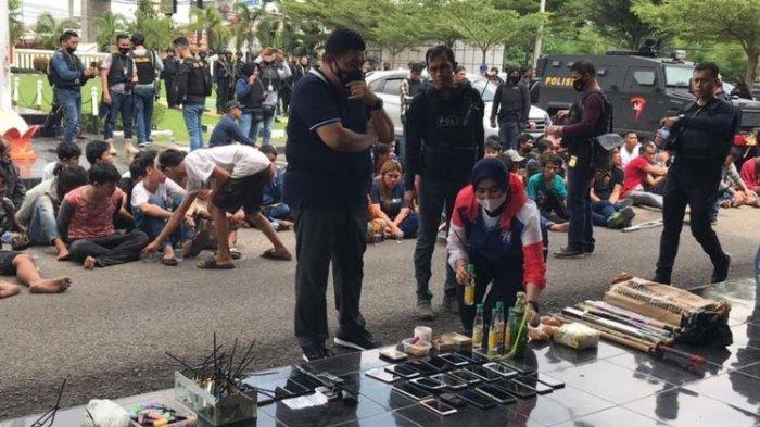 Selain itu juga ada petasan, senjata tajam, air keras dan ponsel yang digunakan komplotan ini untuk melakukan aksinya.