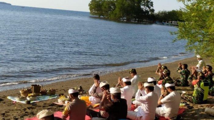 Salah satunya dengan cara niskala, melakukan mulang pakelem di perairan laut Labuan Lalang, Desa Sumberklampok, Kecamatan Gerokgak, Buleleng, Bali, Sabtu (24/4/2021).