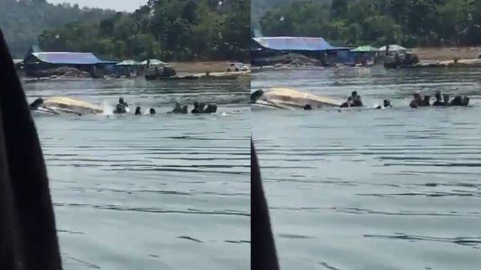 Terbaliknya perahu di Waduk Kedung Ombo, Boyolali terjadi pada Sabtu (15/5/2021).