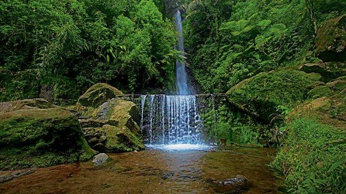 Air terjun ini memiliki air jernih yang melewati bebatuan besar dan dikelilingi pohon-pohon hijau yang menambah kesan keasrian.
