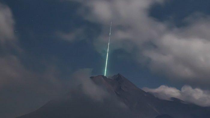 "Meteor jatuh di Puncak Gunung Merapi?? Kali Adem, Cangkringan, Yogyakarta (27 Mei 2021, Jam 23.07 WIB)" tulis @gunarto_song.