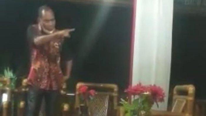 Saat itu, Bupati Amon tampak sedang duduk di kursi bambu dan memarahi dua orang yang diketahui sebagai staf Tri Rismaharini dari Kementerian Sosial (Kemensos) Republik Indonesia.