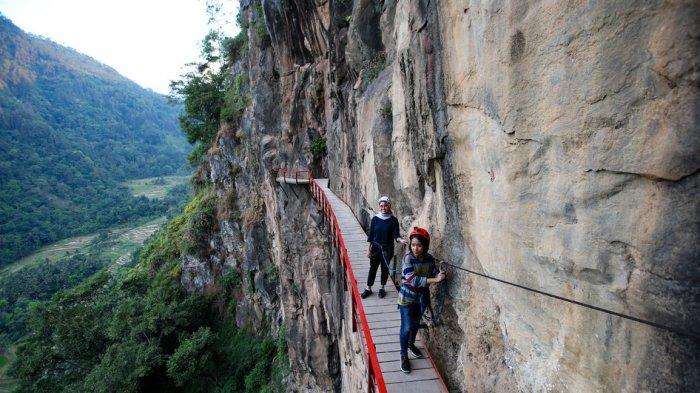 Pengunjung dapat berjalan di atas ondo langit dengan perlengkapan keamanan yang telah disediakan.
