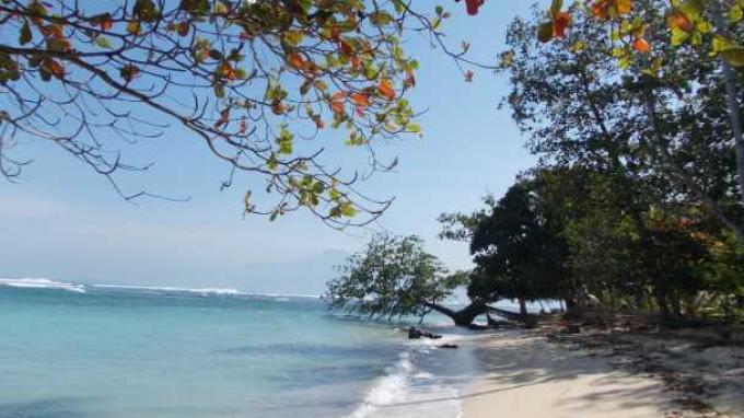 Airnya jernih dan ombaknya relatif tenang, menjadikannya tempat yang tepat untuk berenang.