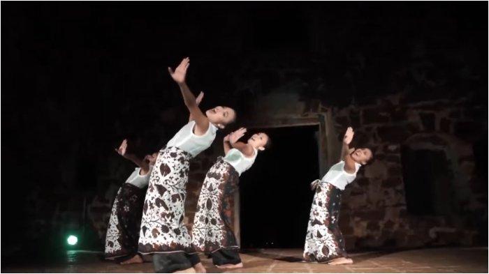 Dengan mengenakan properti sarung bermotif batik, keempat perempuan tersebut menampilkan gerakan lincah, tetapi serasi.