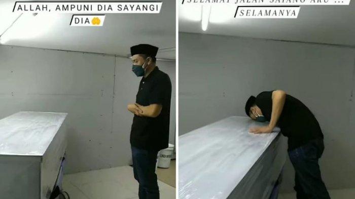 Melalui unggahan Instagram Story-nya, Chico yang mengenakan masker dobel itu tampak melakukan shalat jenazah untuk istrinya.