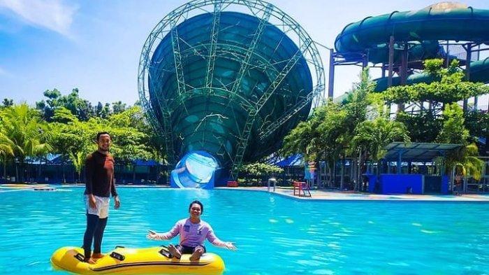Pengunjung bisa menikmati sensasi seperti berenang di pantai dengan wahana kolam ombak di Hairos Waterpark.