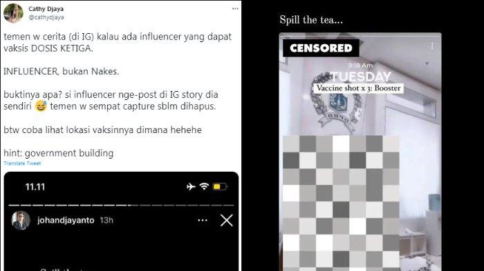 Dari cuitan yang tulis oleh Cathy, terdapat seorang influencer yang mendapat "privilese" vaksin dosis ketiga.