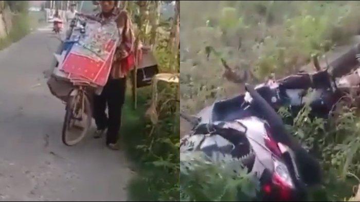 Dalam unggahan milik akun Instagram @net2netnews pada Jumat, (6/8/2021), tampak sepeda milik pedagang keliling itu ringsek.
