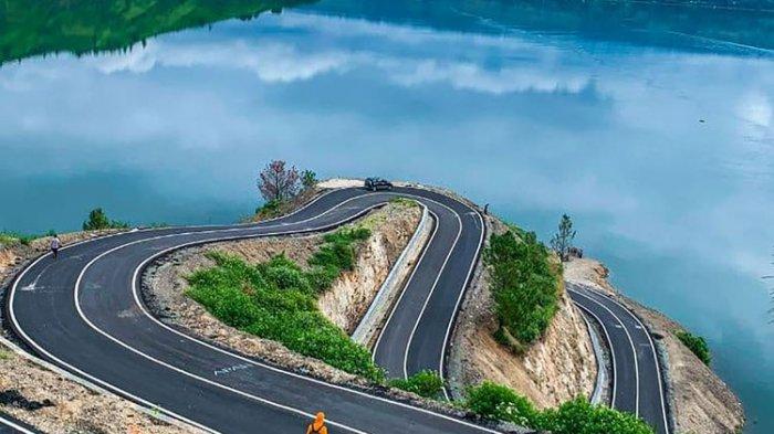 Bisa bersantai sembari menikmati pemandangan di puncak bukit dan menikmati udara segar khas pegunungan, sekaligus menyaksikan jalan berliku yang cocok dijadikan sebagai background foto. (2)