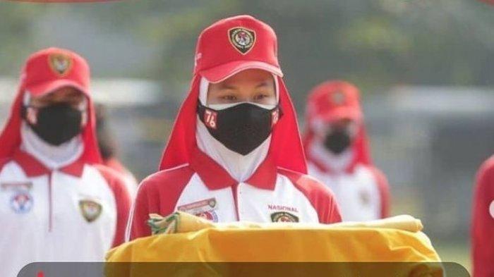 Selain lolos menjadi Paskibraka, Anggita juga berkesempatan berlatih sebagai pembawa baki dalam upacara kemerdekaan RI yang digelar pada 17 Agustus 2021. (1)