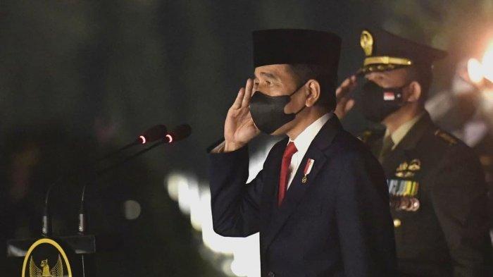 TRIBUNNEWSWIKI.COM – Presiden Joko Widodo memimpin apel kehormatan dan renungan suci di Taman Makam Pahlawan (TMP) Nasional Utama, Kalibata, Jakarta pada Selasa (17/8/2021) dini hari.